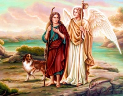 “Deus cura” (Tb 5,4). É citado no livro de Tobias. É quem acompanha Tobias. Por isso, é conhecido como guia dos viajantes. E seu nome é invocado para as curas, além de protetor dos farmacêuticos, já que foi ele quem sugeriu o remédio para a cura da cegueira do pai de Tobias. Leva o título também de protetor dos casais, pois orientou a libertação do demônio que agia em Sara esposa de Tobias.